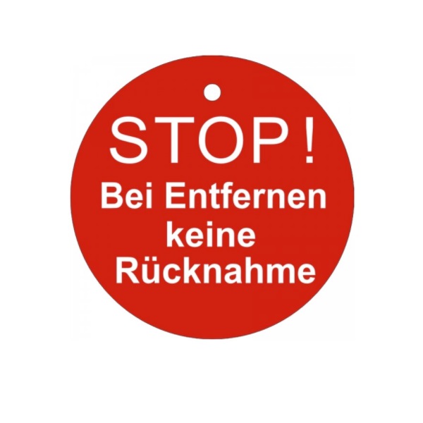 Karton-Etiketten "STOP ! Bei entfernen keine Rücknahme"