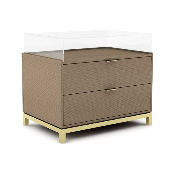 mit Glasvitrine und Metallfussrahmen Effetto Oro Spazzolato